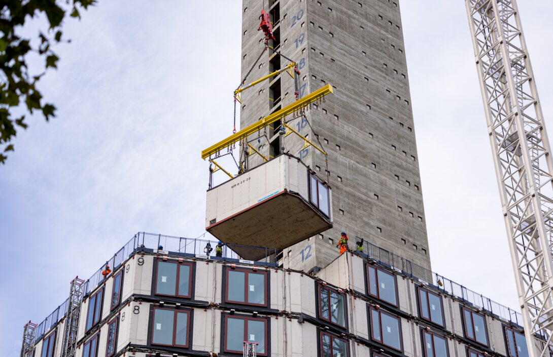 Units are specifically engineered to be transported by flat-bed lorry. Careful planning goes into the logistics of delivering these wide loads so that they arrive on site on a just-in-time basis. Vehicle movements are reduced onsite by up to 80% compared with traditional construction methods.